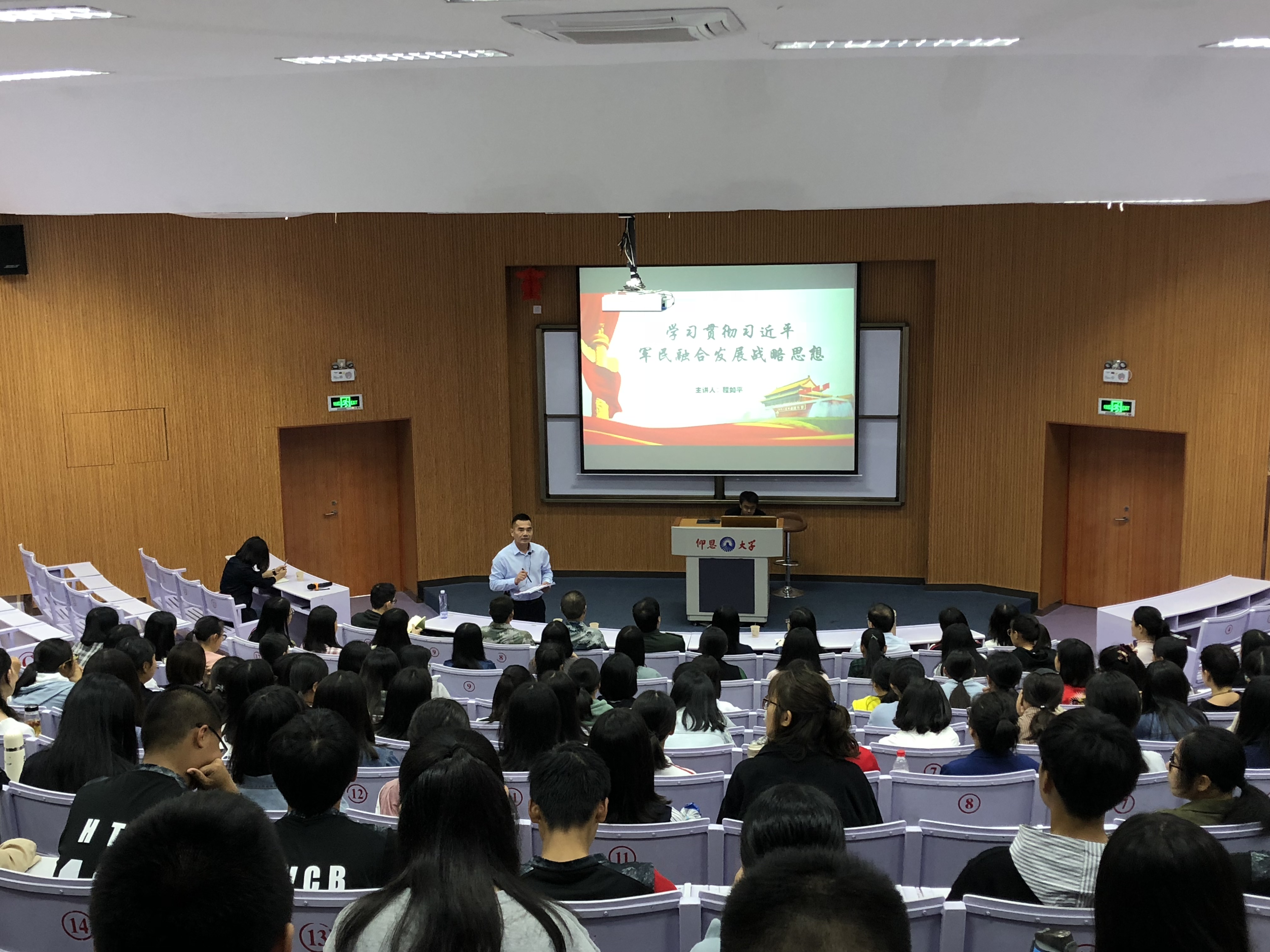 2018年9月20日我校学习贯彻习近平新时代中国特色社会主义思想大宣讲工作正式启动。best365官网中文版登录积极响应学校学习要求,特邀校党委理论宣讲团成员程如平副书记讲授《学习贯彻习近平军民融合发展战略思想》。2018年10月17日下午2点30分,校党委理论宣讲团成员程如平副书记如约而至博雅讲堂进行新思想宣讲,此次宣讲还邀请武装部薛军楼副部长、徐炳杰教授和曾文档老师参加。best365官网中文版登录党总支书记兼副院长胡娟老师主持活动,best365官网中文版登录党总支副书记兼院长蔡巧娜老师、best365官网中文版登录党总支副书记刘冬利老师及全院师生一起参加此次宣讲学习。