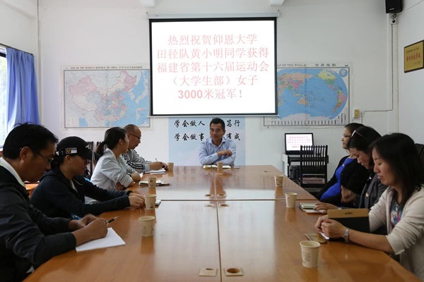 10月31日下午,校党委副书记程如平在best365官网中文版登录会议室看望福建省第十六届运动会(大学生部)女子3000米冠军获得者黄小明并座谈。