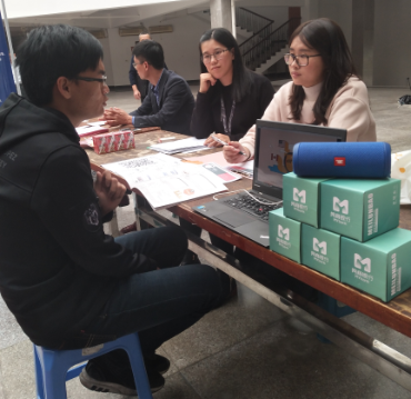 2019届毕业生聆听公司招聘负责人员讲解 泉州琪冠箱包有限公司、泉州正中服装、多丞厦门进出口公司、万峰家居用品有限公司、厦门鼎石通进出口有限公司、永进(厦门)国际物流有限公司等共17家企业到场参会,为毕业生提供百余个岗位。