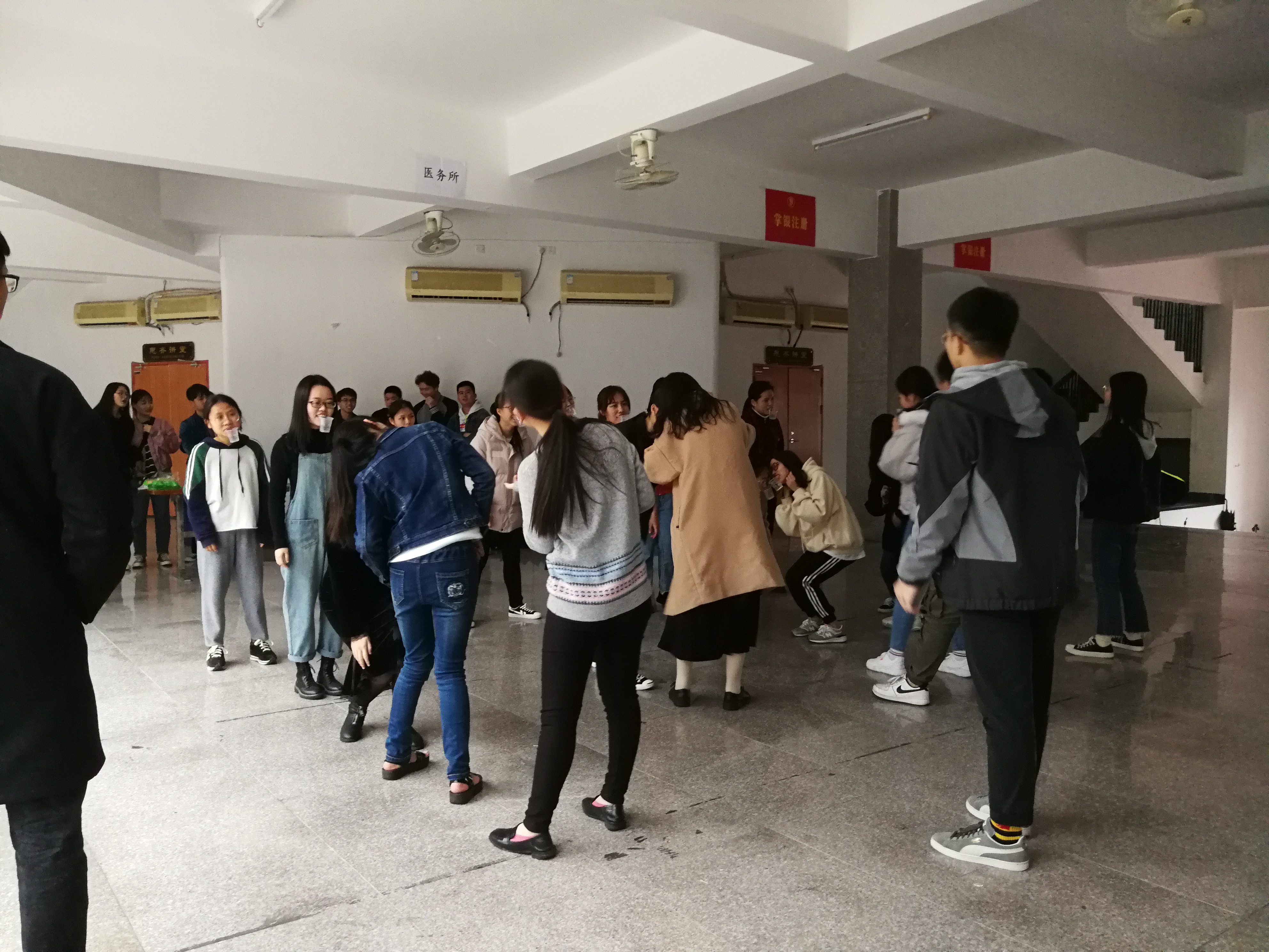 活动现场 此次活动一共设有四个环节:杯水运输、玩转不NG、五人四足一系列精彩游戏,更有令人激动的抽奖环节。大家玩的不亦乐乎,比赛过程中充分体现了同学之间互帮互助的珍贵品质,也促进了彼此之间真挚的交流和感情。