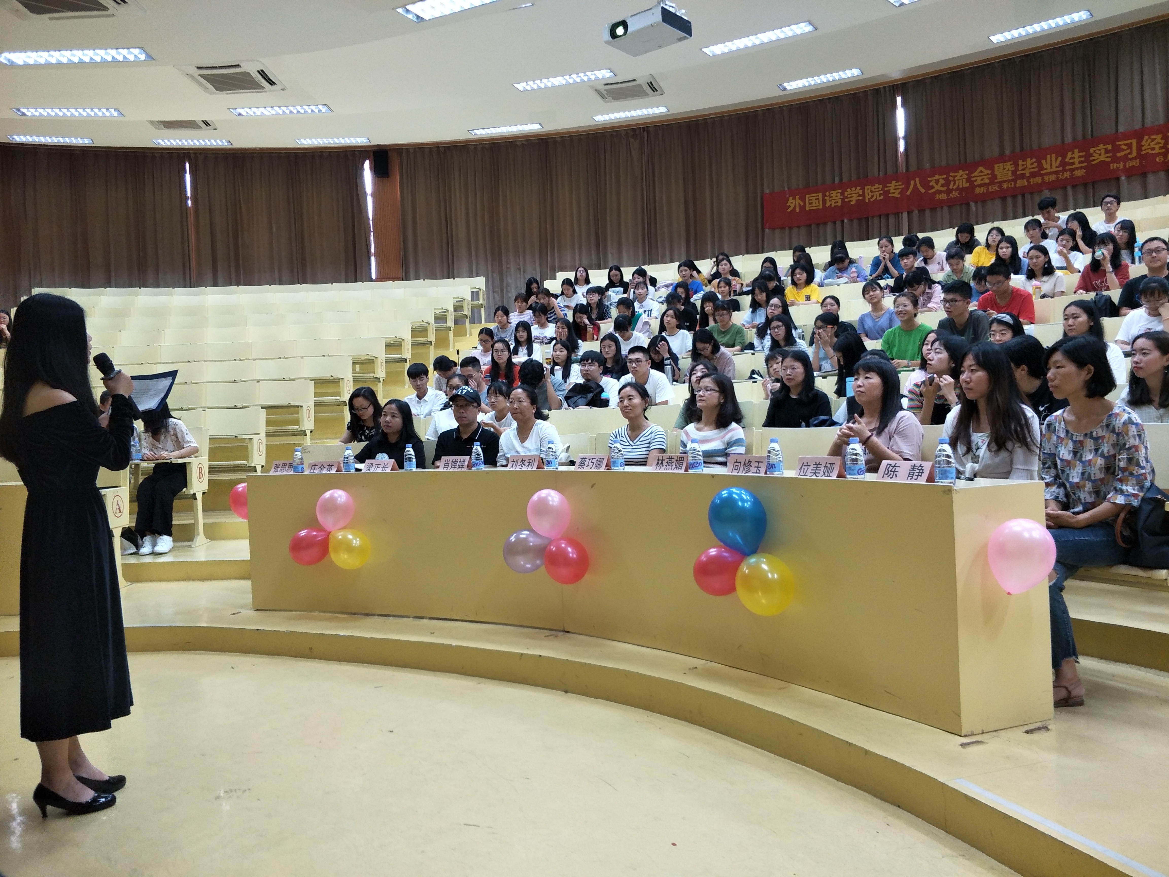 2019年06月17日(周一)下午,best365官网中文版登录于和昌楼惟勤讲堂举行专八交流会,到场的人员有蔡巧娜老师、刘冬利老师、肖婵婵老师、林燕媚老师等外院教师,还有大一、大二、大三全体同学和几位通过专八大三学姐。