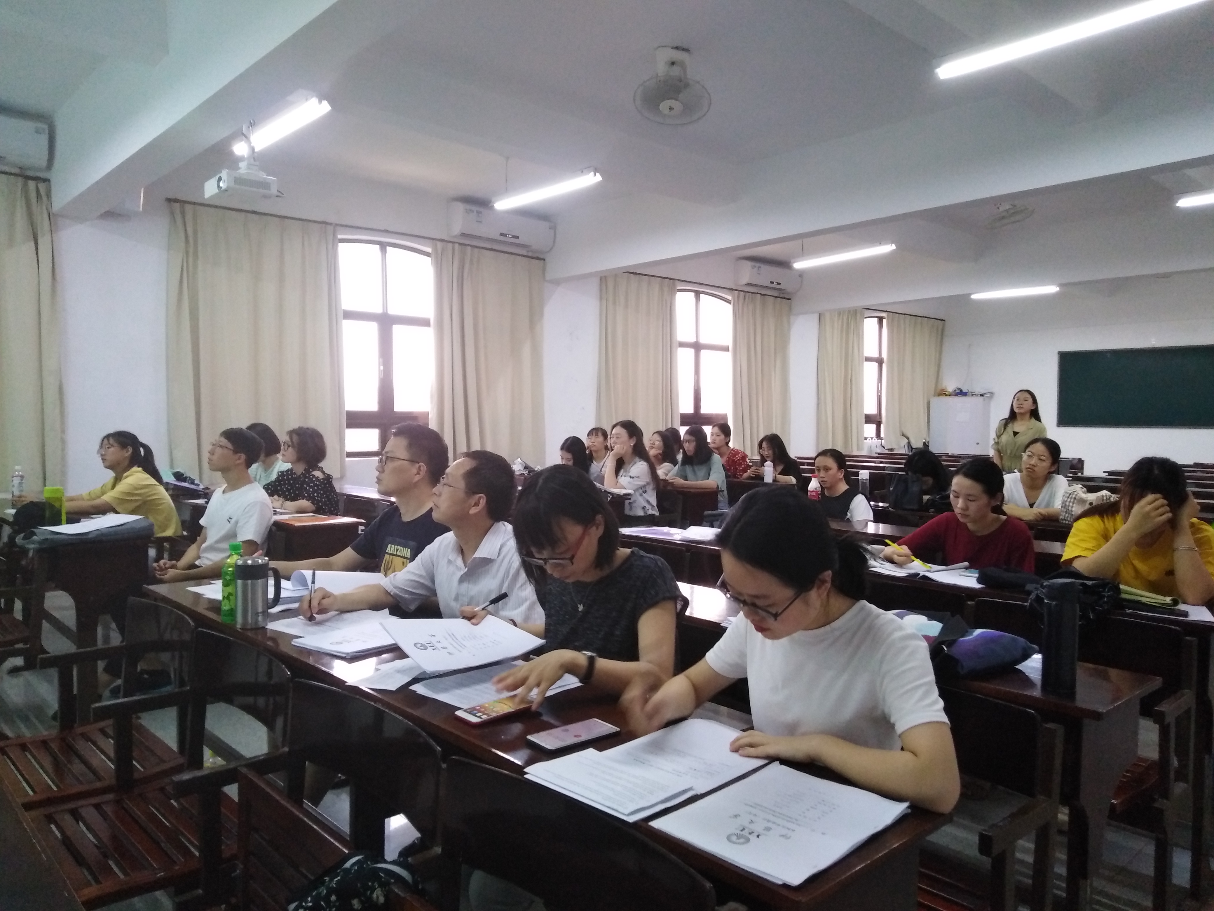本次答辩分为两场,第一场全体同学分组参加,分为三组,每组有18名同学,下午和晚上依次进行;第二场是每组选出优秀答辩的同学,在晚上最后进行,全体老师和同学共同参加。本次答辩委员会主任是林燕媚老师,答辩委员会成员有肖婵婵等8名老师,并且成立了3个小组的答辩分委会。
