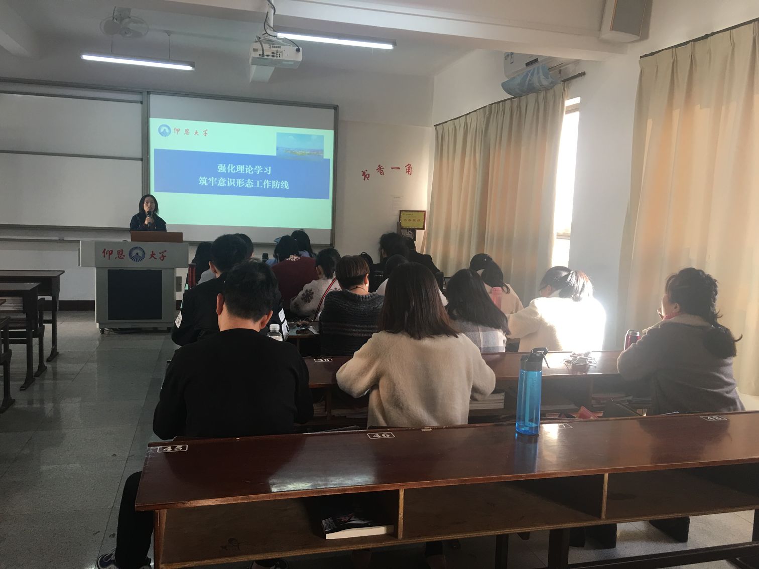 在习近平新时代中国特色社会主义思想指引下,为了扎实推进best365官网中文版登录教工党支部建设,加强教工党员的政治理论学习,全面提高教工党员综合素养,best365官网中文版登录教工党支部于2019年3月至12月,共召开了四次学习分享 会。在每次党小组学习分享会议上,各小组组长结合自己的党建工作经验,以意识形态工作、新时代新担当、一带一路等为分享主题,提出理论见解,强调教工党员在工作和生活中必须树立正确的价值理念,对国家和民族的发展要充满信心。各小组其他党员们也纷纷从党的理论知识、教学感想、科研体会等方面分享近期的学习心得,展示了教育工作者们“不忘初心,方得始终”的终身学习思想。