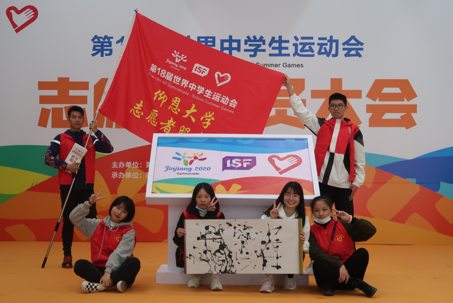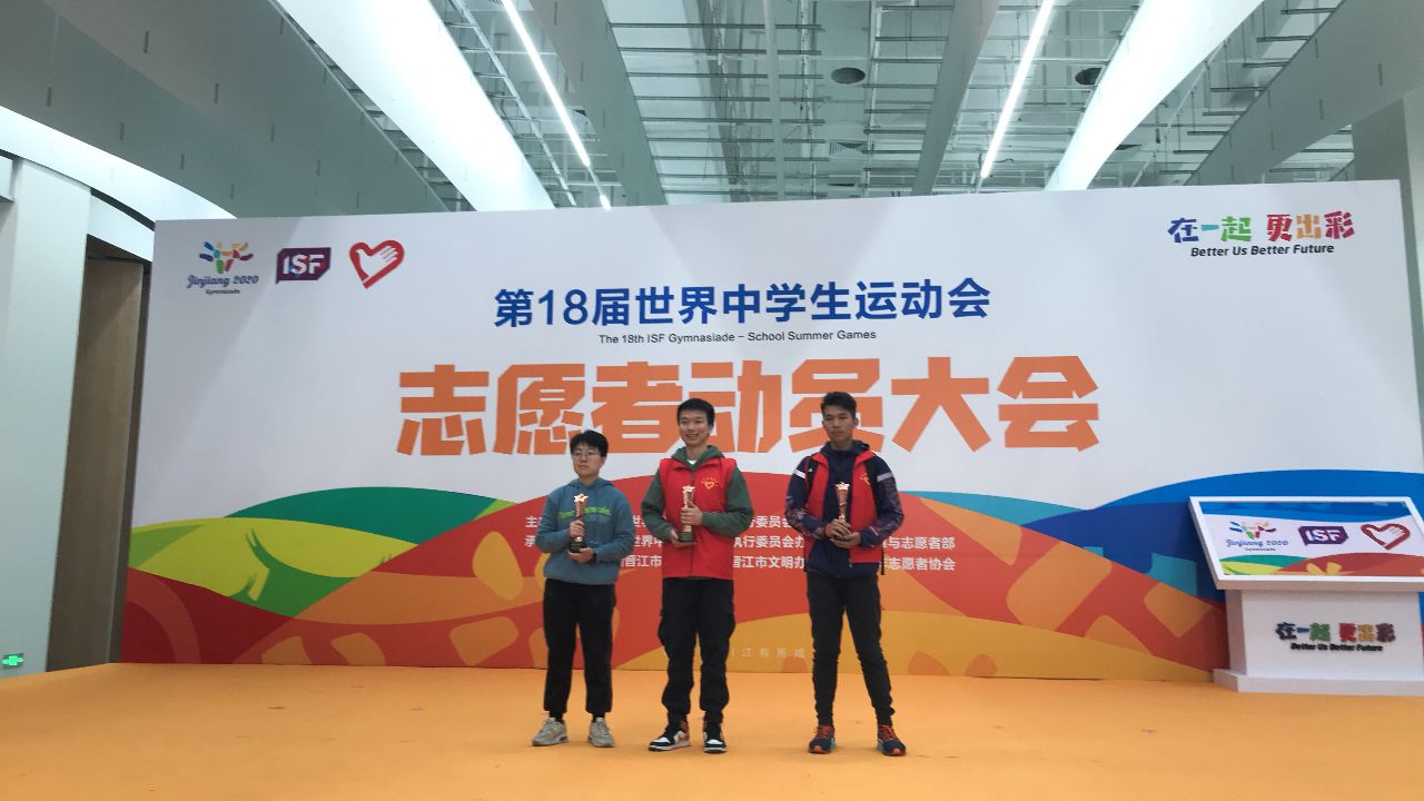 我校派出了6名代表参加,best365官网中文版登录2018级英语2班的谢程航同学作为我校志愿者服务队代表接受了世中运会执行委员会授旗。