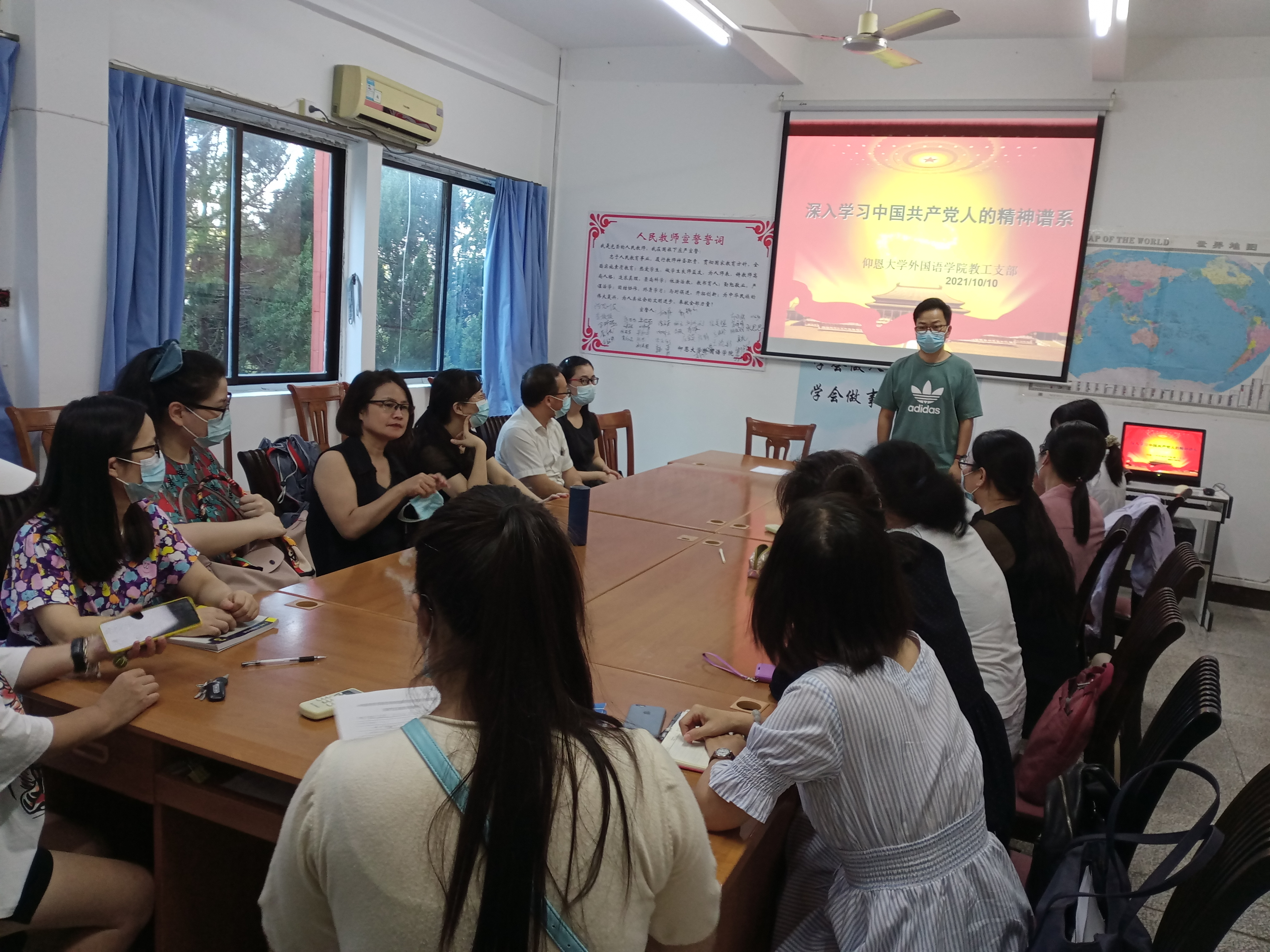 10月10日best365官网中文版登录教工党支部在仰光楼学院办公室开展全体党员大会,深入学习中国共产党人的精神谱系。会议由教工支部书记蔡维主持,全体教师党员参加。