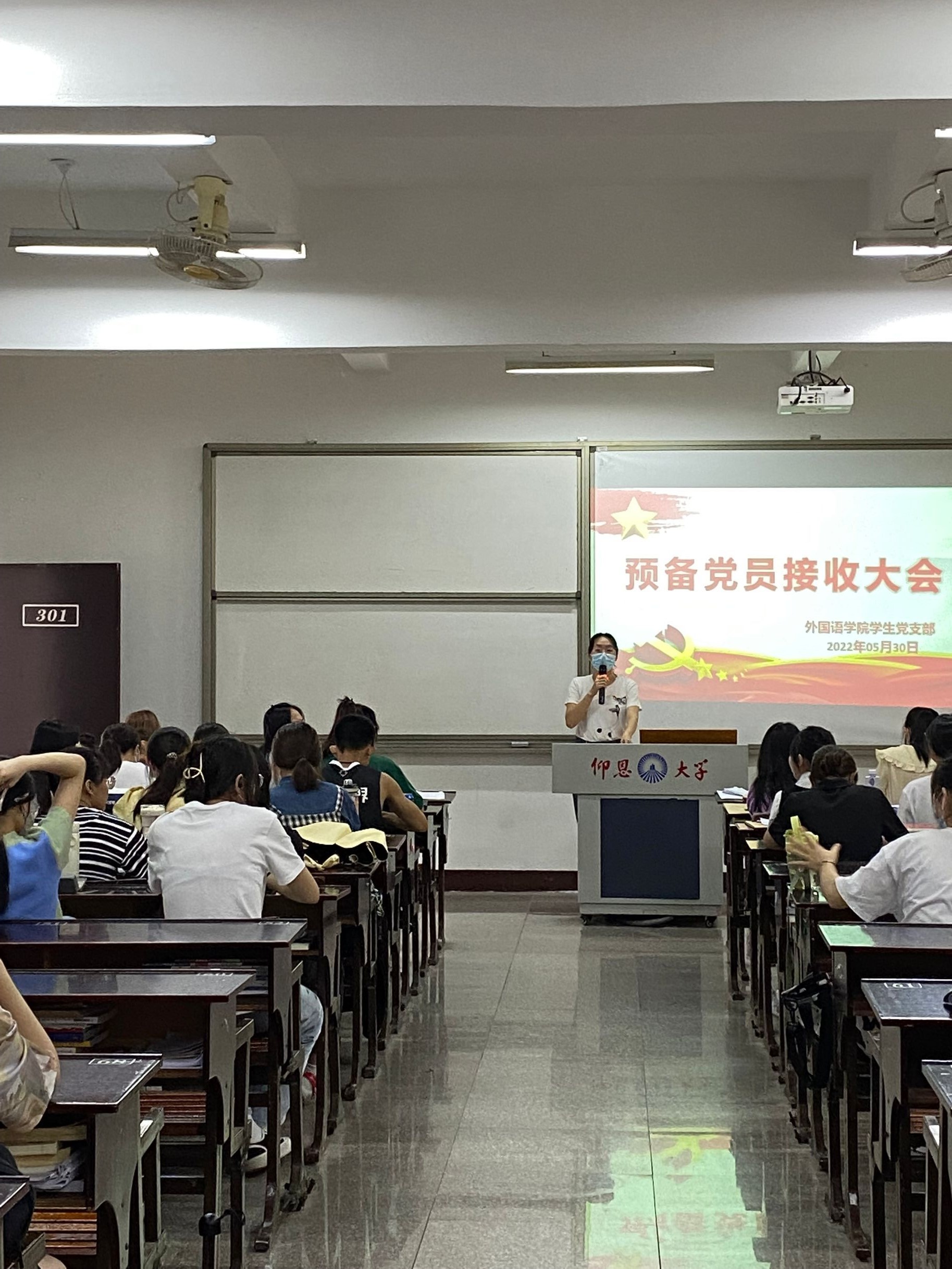 2022年5月30日best365官网中文版登录学生党支部在普照教学楼301教室召开预备党员接收会议。本次会议由许淑琴书记主持,向修玉同志、位美娅同志以及全体支部成员出席参加。