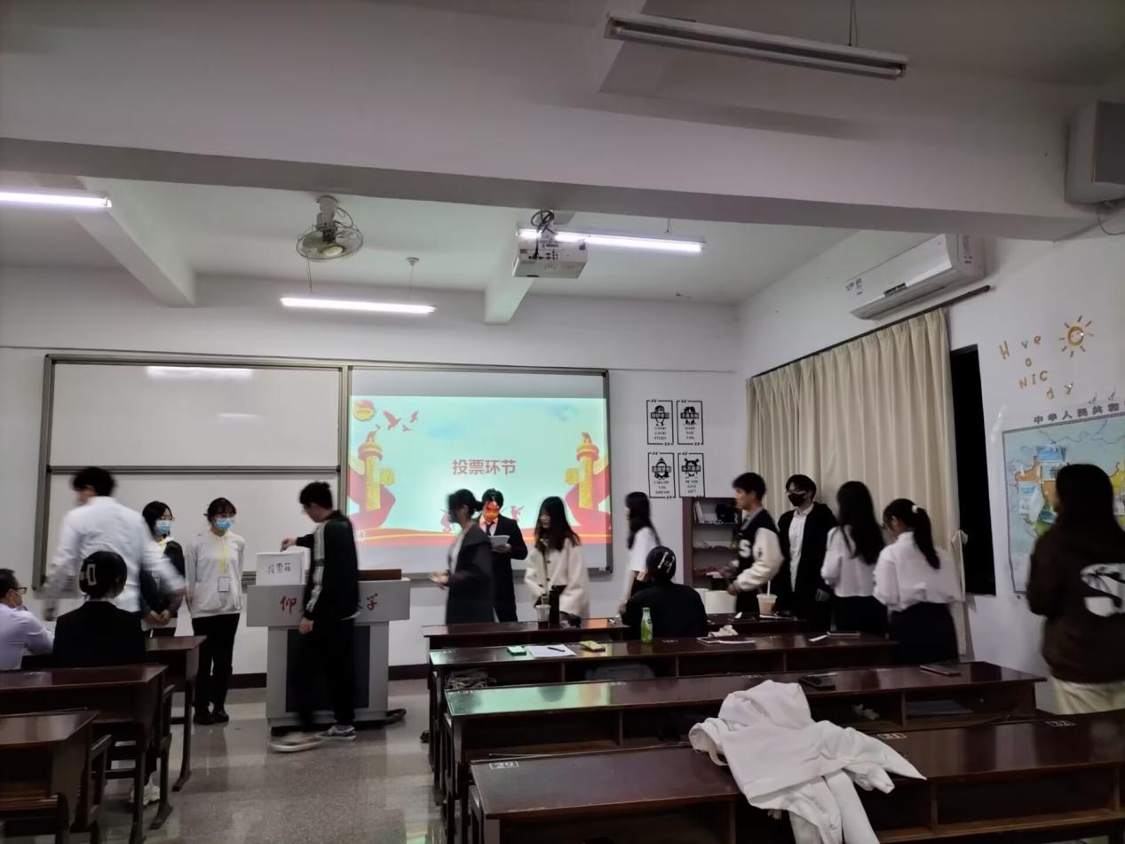 大会开始,四位主席团候选人进行发言,向学生代表和老师们表达自己的竞选意愿,竞选优势以及职位认知等。候选人发言完毕之后,进行投票环节,学生代表们在监票人和计票人的监督下依次、有序地将选票放入投票箱。