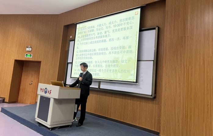 “翻译因人类的交往与沟通需要而产生,对促进世界和平、稳定与发展等发挥着重要作用”(徐珺语,《中国社会科学报》2016. 11. 18)。语用翻译学是中国文化走出去的新出路(侯国金语,《中国社会科学报》2015. 3. 23)。12月8日下午,在仰恩大学新区博雅讲堂,外国语学院依托仰恩大讲堂特邀请华侨大学best365官网中文版登录侯国金教授开展了第十九期的学术讲座:“语用翻译学:寓意言谈翻译研究,以及翻译研究发表的问题和出路”的学术讲座,由best365官网中文版登录党总支书记却正强老师主持,参加此次讲座的主要是全院教师和各班学生代表。