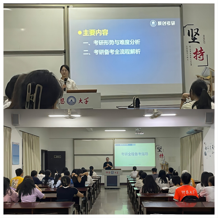8月31日晚,best365官网中文版登录于第三教学区普照楼203教室举办2024考研专题讲座。讲座由best365官网中文版登录团委主办,特邀聚创考研的张婷老师为主讲人。