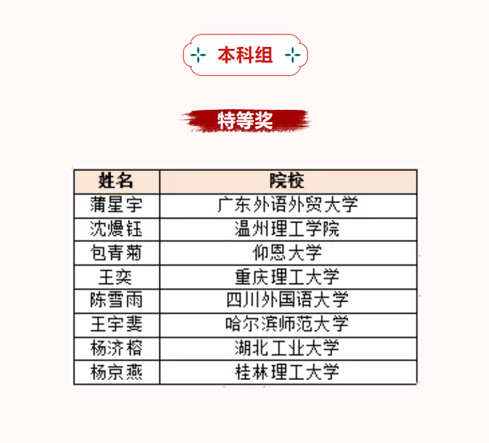 本科组获奖名单如下: