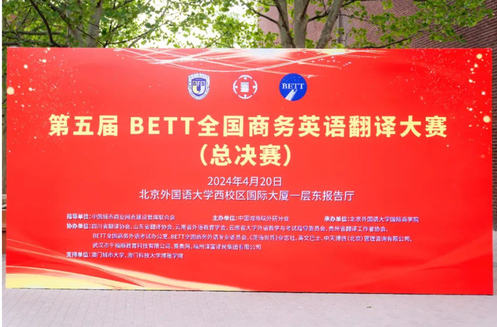 本次总决赛由中国城市商业网点建设管理联合会指导,中国城商联外研分会主办,北京外国语大学国际商学院承办。每年4月,来自全国各地的高校学子,以及业界精英们汇聚一堂,展示了自己商务英语翻译的专业技能和深厚实力。本次大赛共有26个省(直辖市)的102所高校正式组织参赛,最终有来自近500所高校及企事业单位的1万多人次参赛。其中,成功晋级总决赛(笔译赛)的共有1004人,报名参赛310人,成功晋级总决赛(口译赛)的共有73人,报名参赛29人。