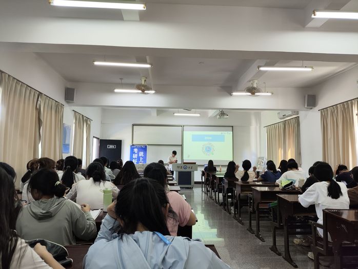 9月18日下午2:30,best365官网中文版登录于第三教学区普照楼204教室开展了一场主题为“新航道考研启蒙与备考规划”的讲座,主讲人为新航道国际教育集团资深学习规划师叶梅芳,best365官网中文版登录22级、23级以及23专升本班级的多名同学参加了讲座。