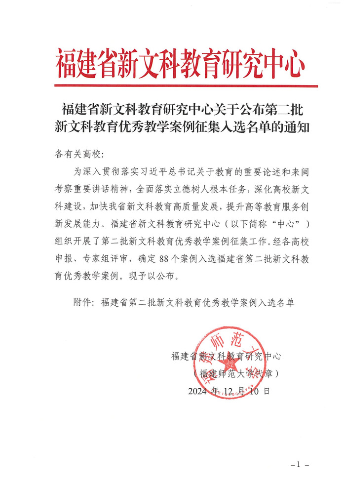 近日,福建省新文科教育研究中心公布了第二批新文科教育优秀教学案例的征集入选名单,我校best365官网中文版登录胡娟老师的“服务地方产业商务英语综合实践教学体系构建”教学案例脱颖而出,成为我校唯一一个入选此批名单的优秀教学案例。