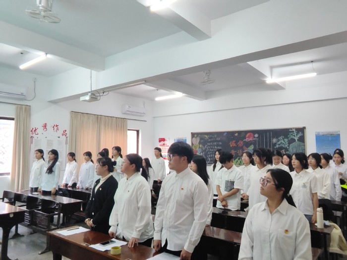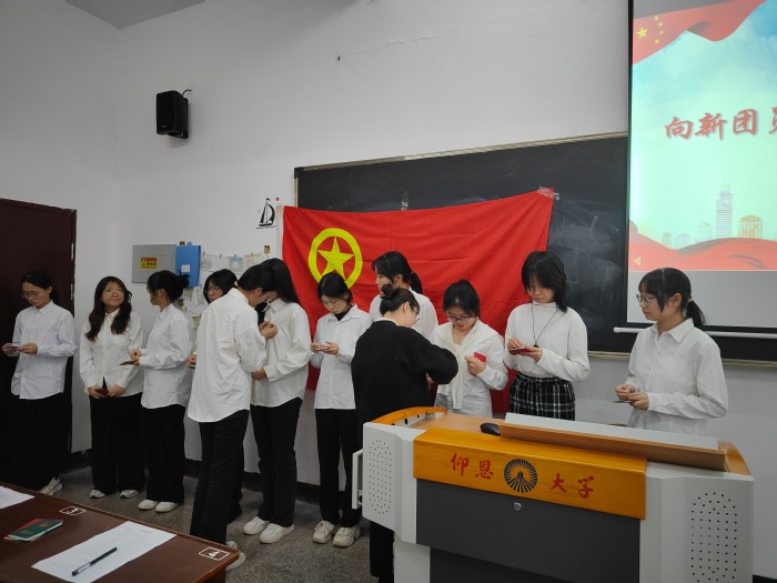为新时代的中国青年在接续奋斗中谱写强国建设、民族复兴的壮丽篇章,best365官网中文版登录团委于2024年12月26日下午4点在普照楼101b举行新团员入团宣誓仪式。此次仪式由院团委干部郑雅萱主持,邀请院团委书记孙宇老师、院团委学生第一副书记郑钰灵、院团委学生第二副书记吴同洲及院团委干部干事出席,2024-2025学年第一学期入团的新团员全员参加。