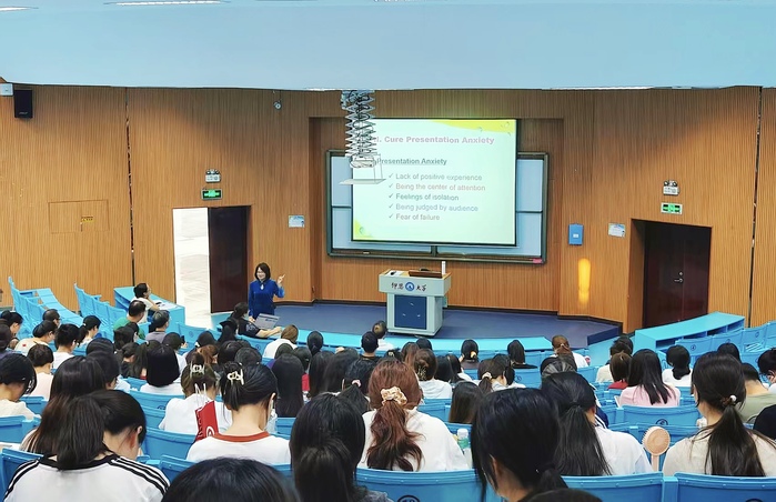 讲座中,薛教授直击学生“哑巴英语”困境与演讲焦虑核心痛点,结合自身实践与案例分享实用技巧:在内容设计上,强调选题需兼具吸引力与针对性,演讲结构要做到“开头引人、主体清晰、结尾升华”;在表达与呈现上,详解肢体语言(站姿、手势、目光交流)、“抑扬顿挫”的语音技巧对演讲效果的加持作用;在心态调节上,提出充分准备筑牢自信、深呼吸缓解紧张、聚焦友善听众减少压力等应对焦虑的方法。她特别指出,英语演讲不仅是语言能力的展现,更是跨文化交流的载体,鼓励学生结合个人知识和经验积累,在演讲中自信讲好中国故事,呼应“一带一路”背景下构建人类命运共同体的重大实践之需求。
