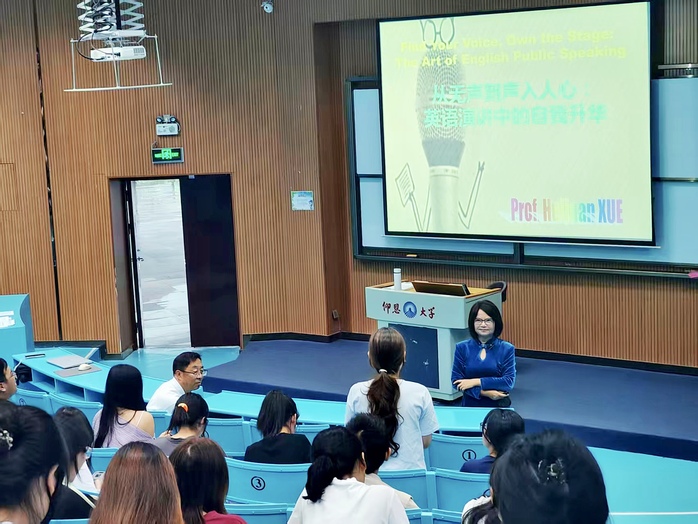 2025 年 10 月 13 日下午,仰恩大讲堂第六十四讲在该校第三教学区和昌楼海纳讲堂顺利开展。本次讲座以《从无声到声入人心:英语演讲中的自我升华》(Find Your Voice, Own the Stage: The Art of English Public Speaking)为主题,由best365官网中文版登录商务英语专业负责人薛惠娟教授主讲,为师生破解英语演讲难题,助力英语语言能力与综合素养提升。