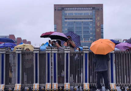 家长们亦是带着不舍和嘱托,久久在校门外徘徊不肯离去,尽管孩子的身影已经远去,尽管雨水淋湿了衣服,他们一直目送孩子走远,等孩子一句安顿好的回复。不过,看到志愿者的热情服务,家长们也更加放心,想到孩子即将开启大学新生活,脸上也露出开心的笑容。