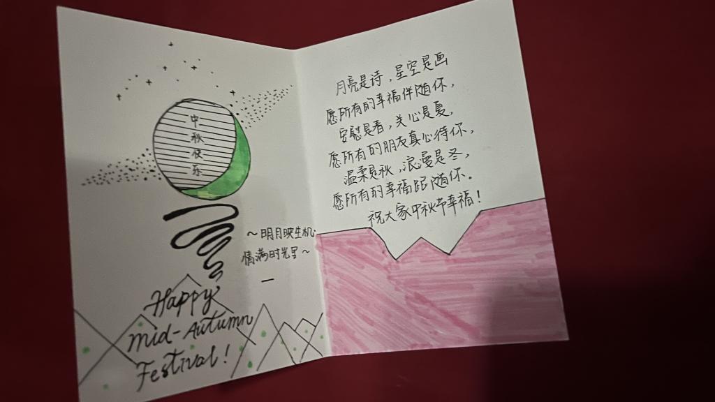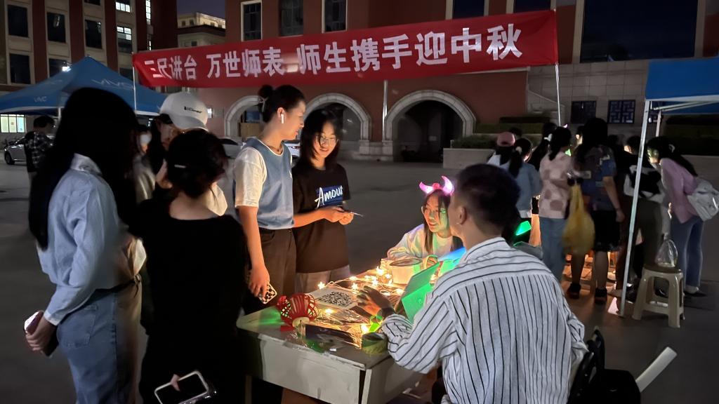 2022年教师节喜遇中秋节,在双节同庆之际,新葡的京集团35222vip于9月3日起举办了“月下师生缘”系列活动,此活动包含“月下师生缘—谜彩斑斓,星河璀璨”游园会,“月下师生缘—心怀皓月和感念师恩”抖音作品征集展示活动,“双节”前夜活动迎来高潮,单时段参与人数突破百人,累计参与人数达500余人。